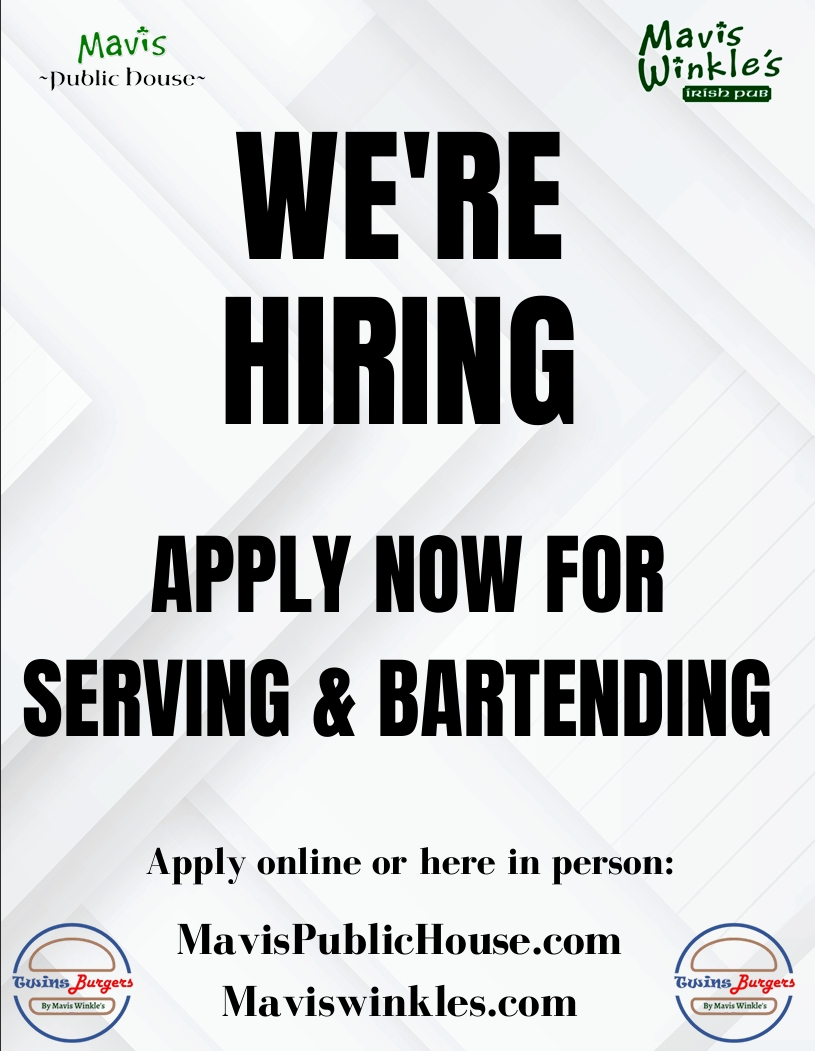 Now Hiring – Join the Mavis Team! Are you—or someone you know—looking for a new job opportunity? Mavis Public House in Solon and Mavis Winkles in Twinsburg are currently looking for fun, energetic, and motivated individuals to join our team! We are now hiring for the following positions: • Bartenders • Servers • Hosts • Dishwashers If you’re passionate about hospitality and enjoy working in a fast-paced, team-oriented environment, we’d love to meet you. Inquire today at: 👉 www.mavispublichouse.com 👉 www.maviswinkles.com